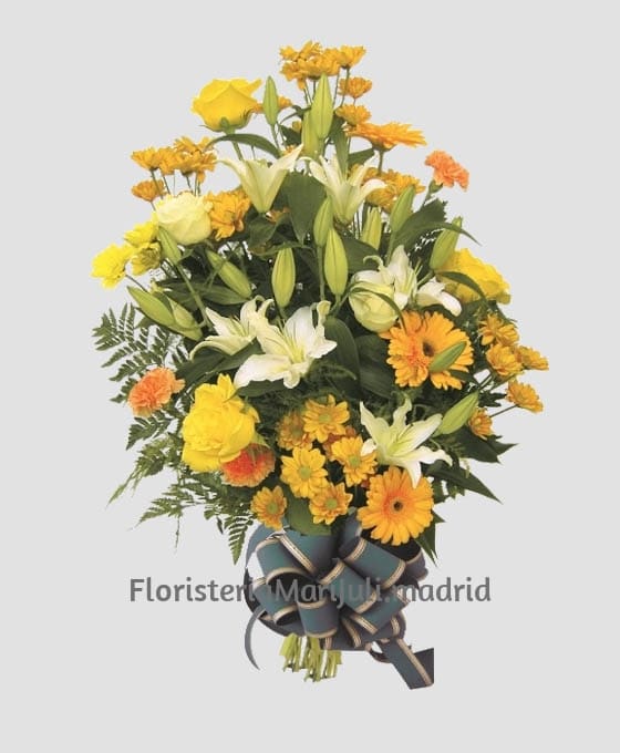 Este ramo de flores para difuntos, es un producto de gran calidad, con flores frescas suministradas a diario por nuestros proveedores, tanto nacionales como internacionales. Por lo que lo elaboraremos lo más parecido posible o a gusto del cliente.