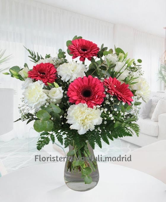 El Ramo Flores Bruselas, de nuestra floristería online , de colores bonitos, en tonos rosados y blancos, confeccionado con gerberas, claveles, lisianthums, paniculata y verdes variados. Un rincón de la naturaleza en un detalle excelente. Sin duda, un ramo clásico y elegantes para hacer el mejor regalo. Nuestros arreglos florales entre los que destacan los ramos de flores de regalo están realizados siempre con flores de primera calidad y frescas.
